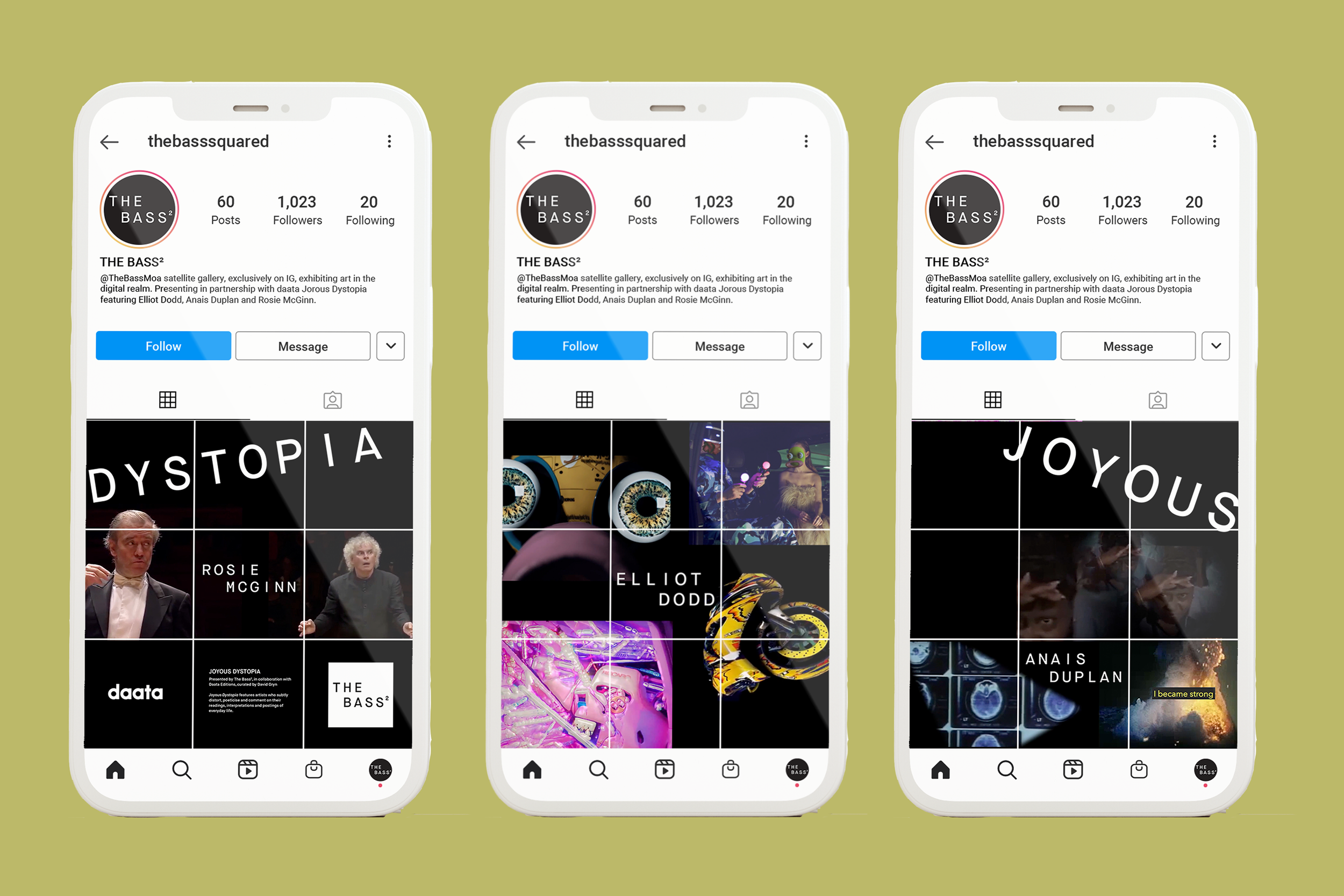 The project was to create not only a sub-brand for The Bass Museum of Art, but also a look for how it should be displayed on the feed. This particular exhibition was a set of short films through the organization daata, in partnership with the museum.