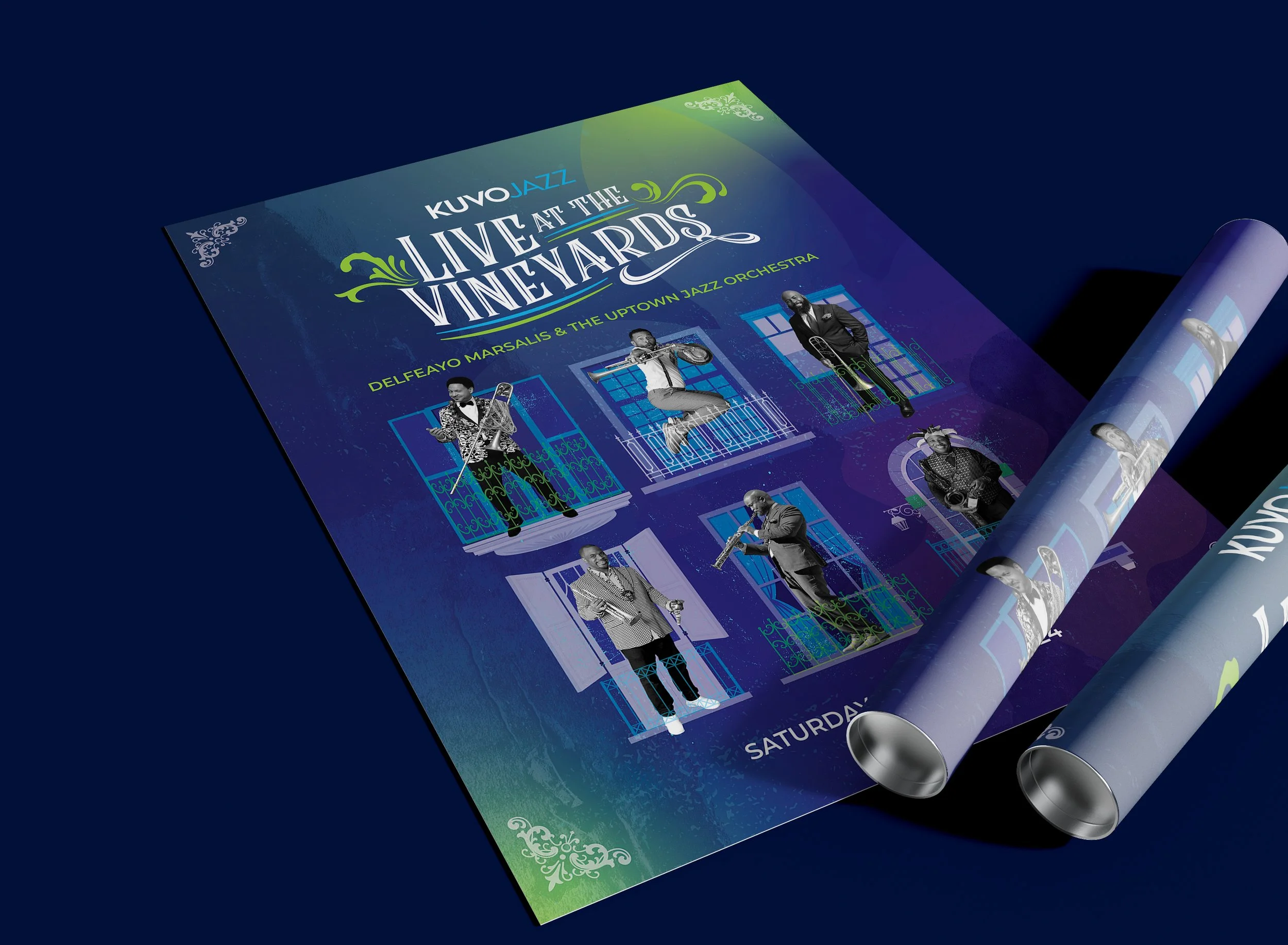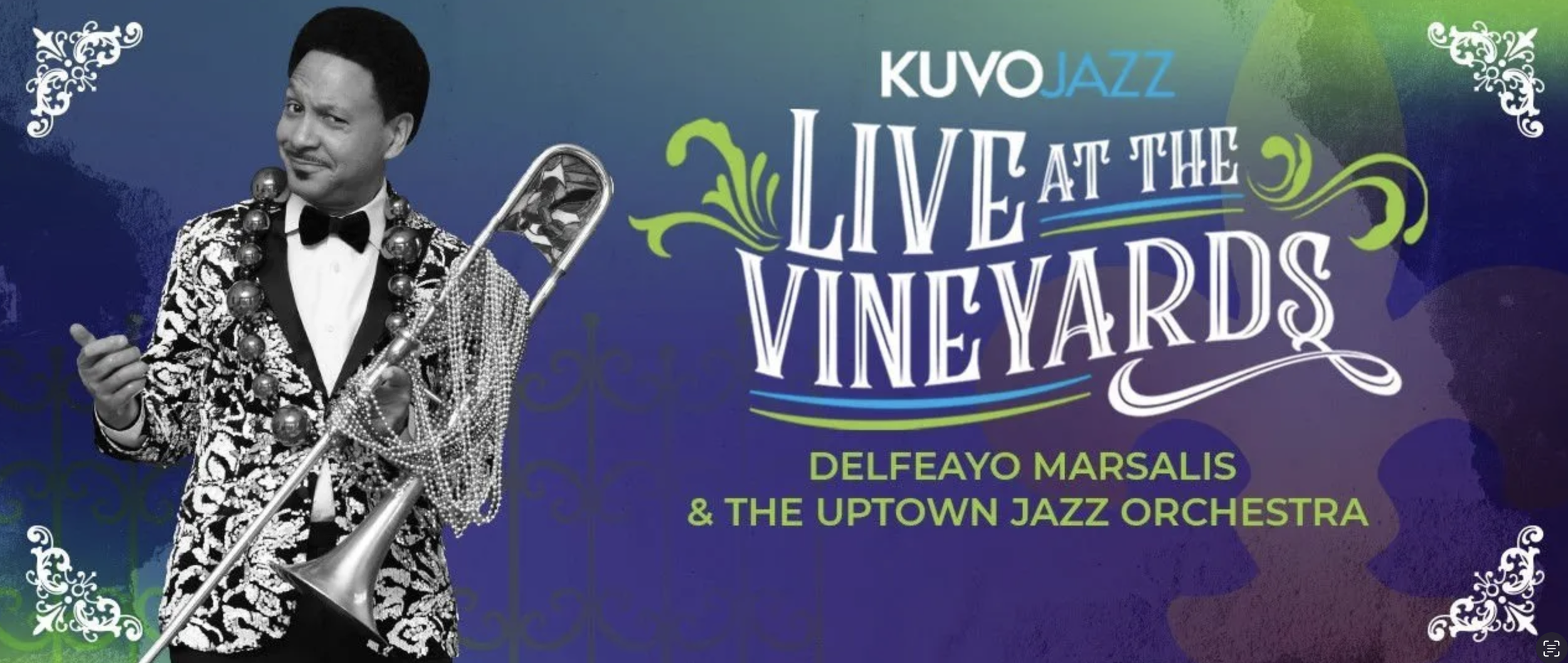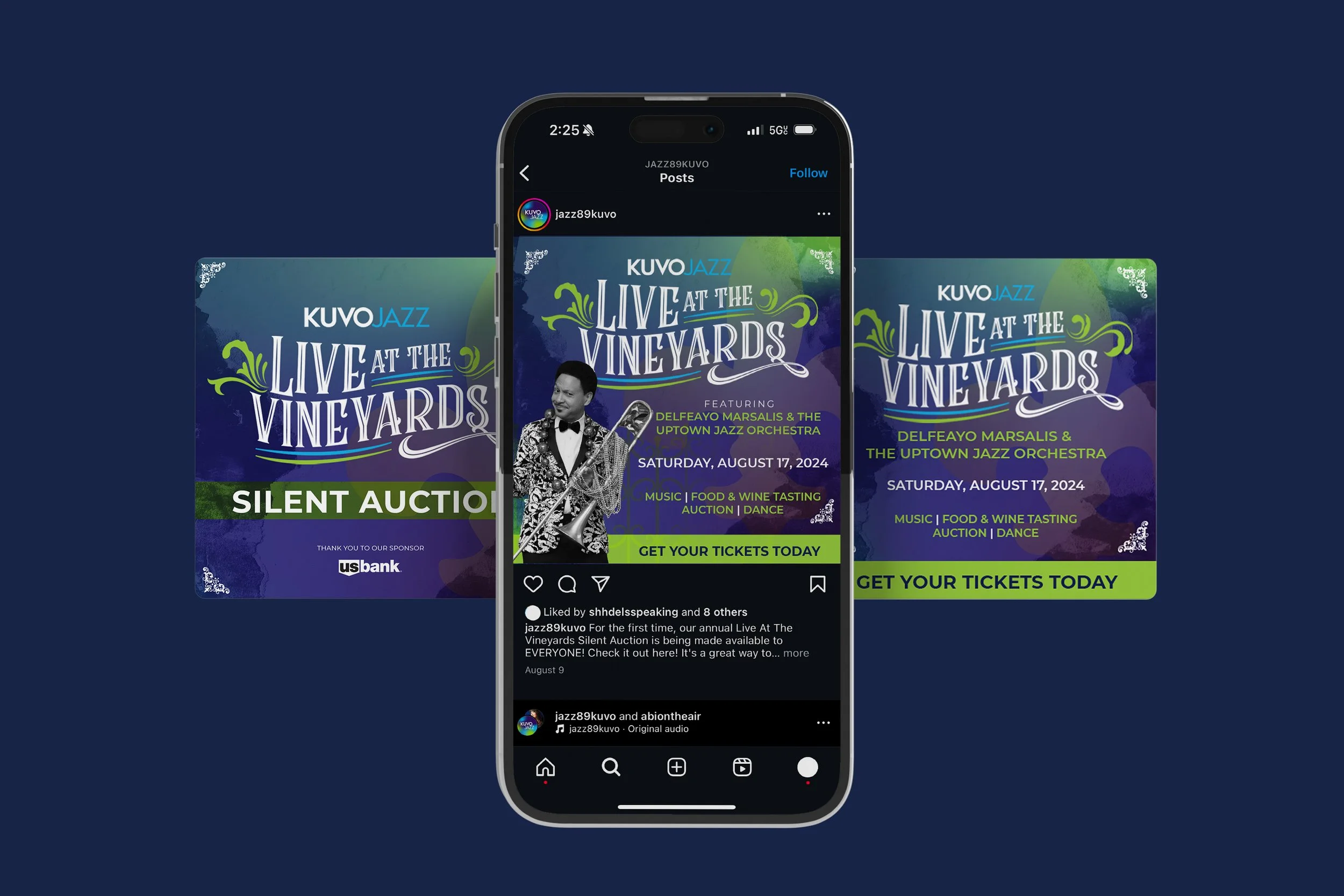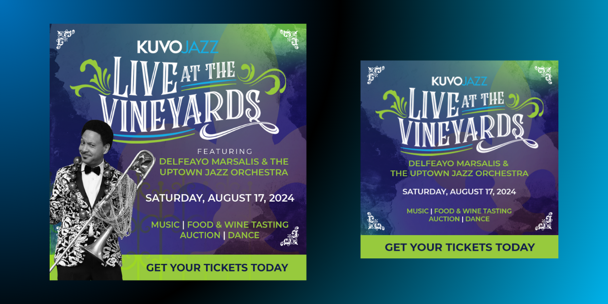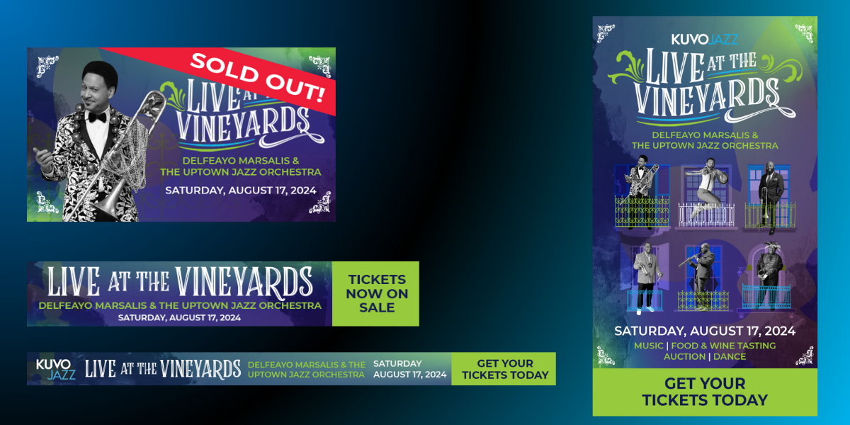 For KUVO JAZZ's 19th Annual Live at the Vineyards event featuring Delfeayo Marsalis and the Uptown Jazz Orchestra, I developed a cohesive branding and aesthetic that genuinely reflected the spirit of the occasion - pulling from the vibrant colors and vibes of New Orleans and Mardi Gras. From designing the custom wine bottles to creating a lively visual identity for the event, every element was crafted to enhance the experience. The event featured a delightful wine-tasting and gourmet feast and a vibrant atmosphere for dancing and community celebration. Attendees enjoyed a memorable evening filled with music and a silent auction, surrounded by the backdrop of Balistreri Vineyards. My contributions helped to capture the essence of this beloved annual gathering while ensuring a seamless and engaging experience for everyone involved.