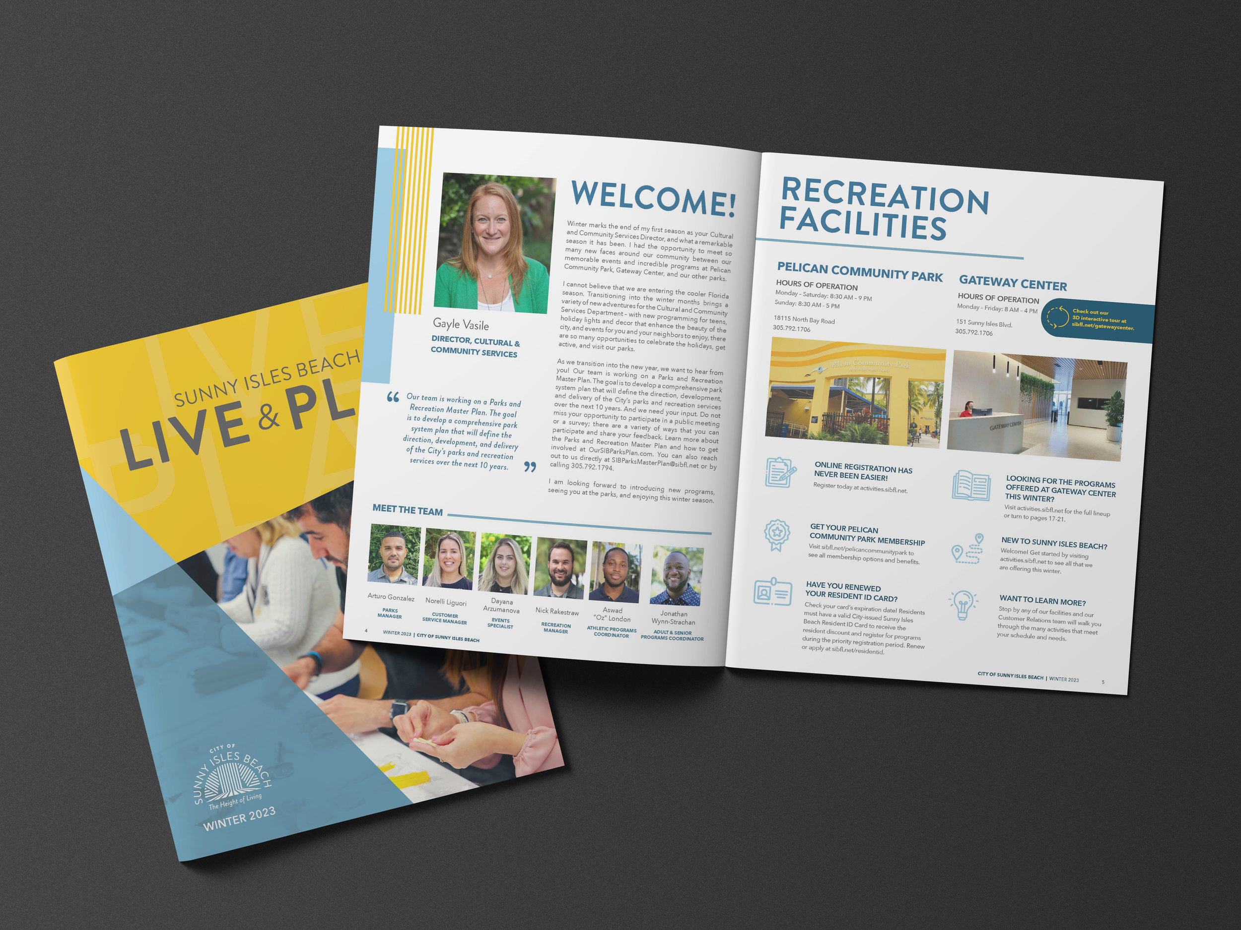 Developed to cater to residents and visitors, the magazine serves as a comprehensive guide, providing a wealth of information about the activities, programs, and events taking place in Sunny Isles Beach. Going beyond essential information, Live & Play magazine focuses on delivering the content that residents truly want to know. Its goal is to keep the community informed, engaged, and foster a strong sense of belonging. Whether it's upcoming programs, events, or recreation amenities, this award-winning publication serves as a valuable resource, connecting the community with all the exciting opportunities available in Sunny Isles Beach.