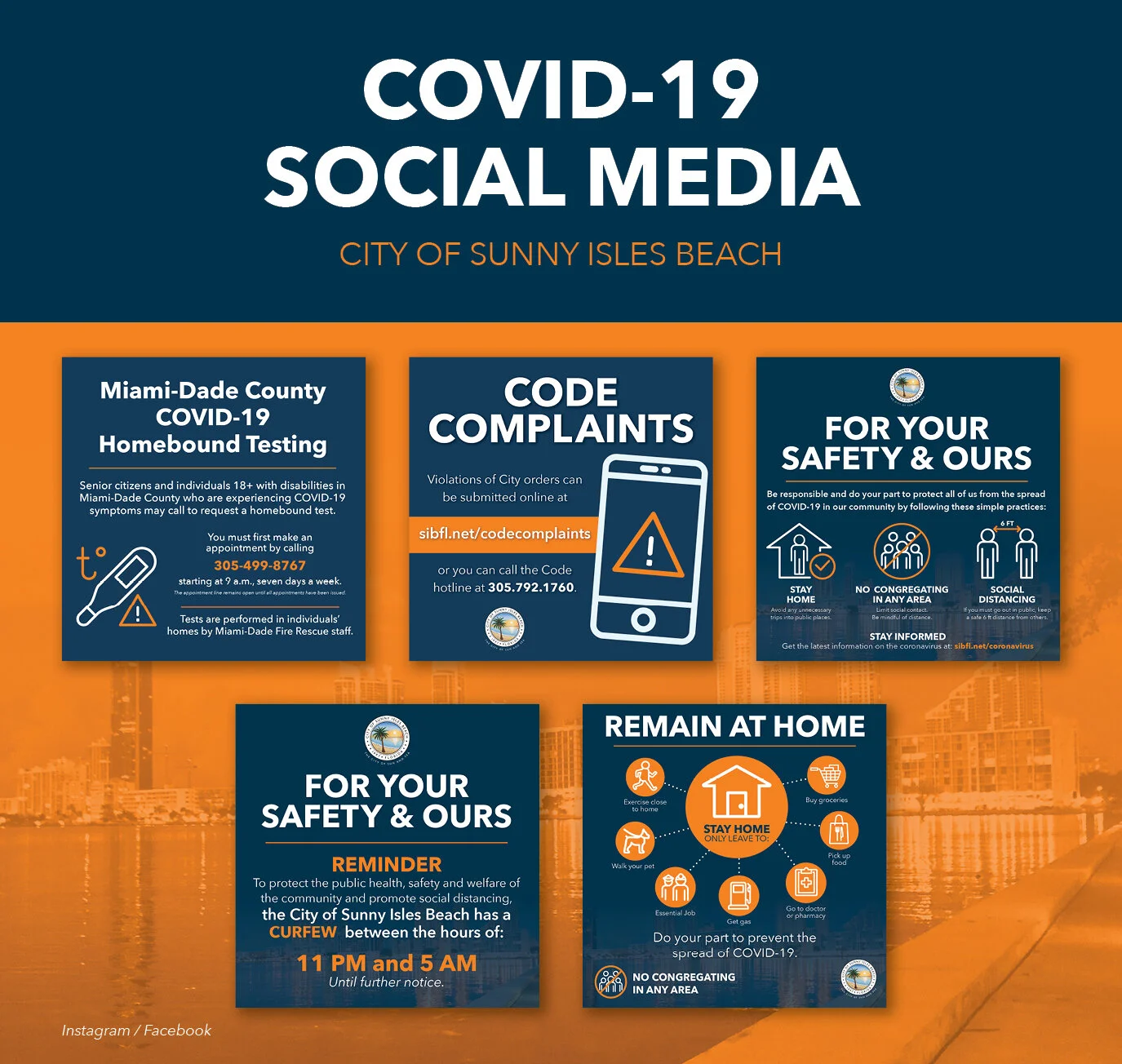 During the COVID-19 pandemic I was assigned to create a cohesive look during the State of Emergency that effected not only the small city of Sunny Isles Beach, but the entire nation. For this project I was tasked to create signage across both digital and print platforms.